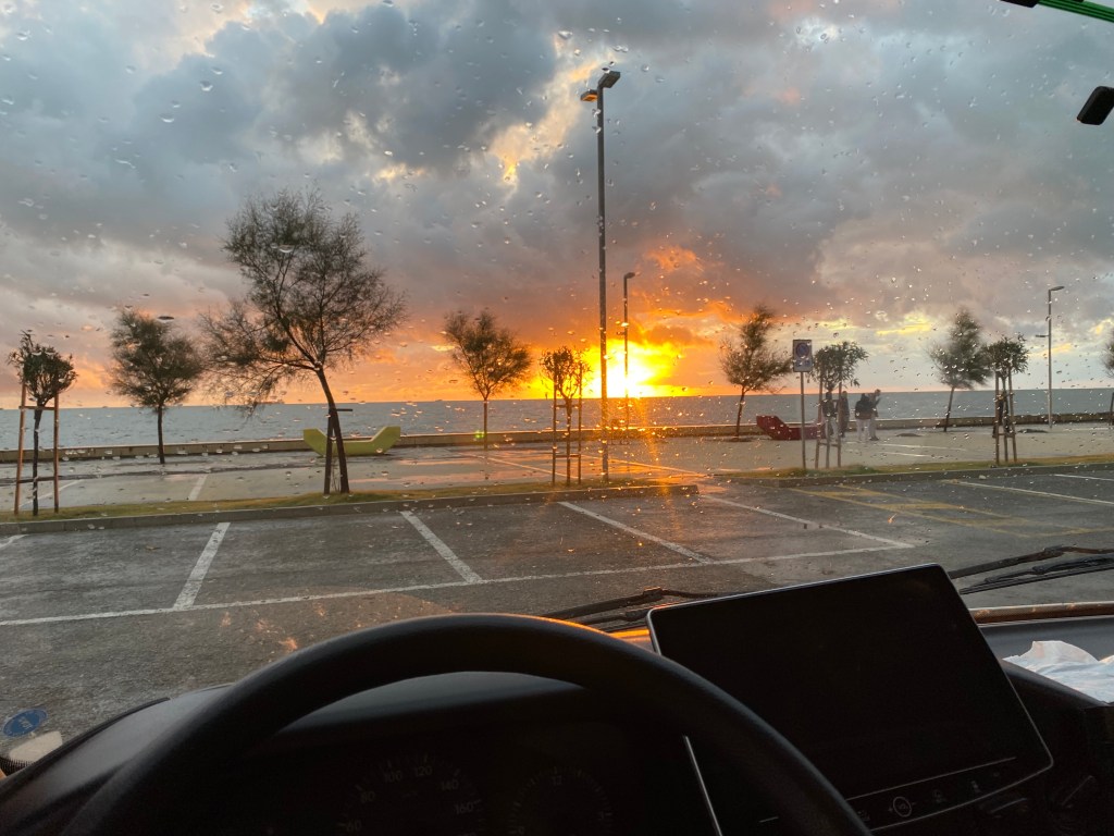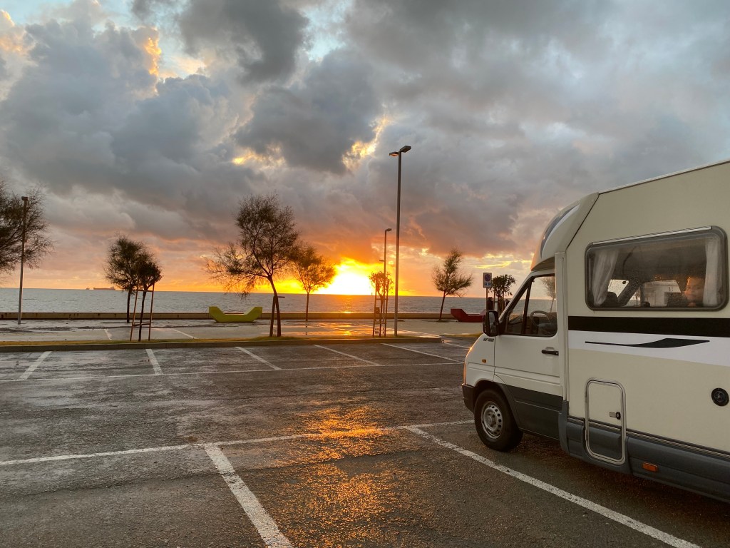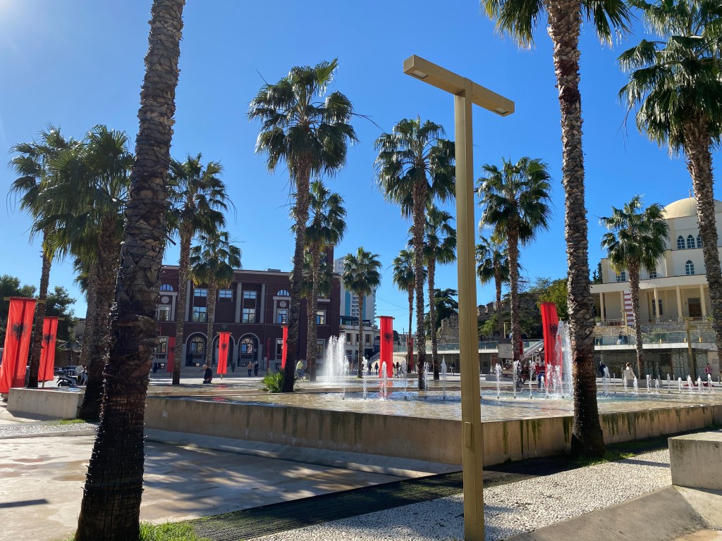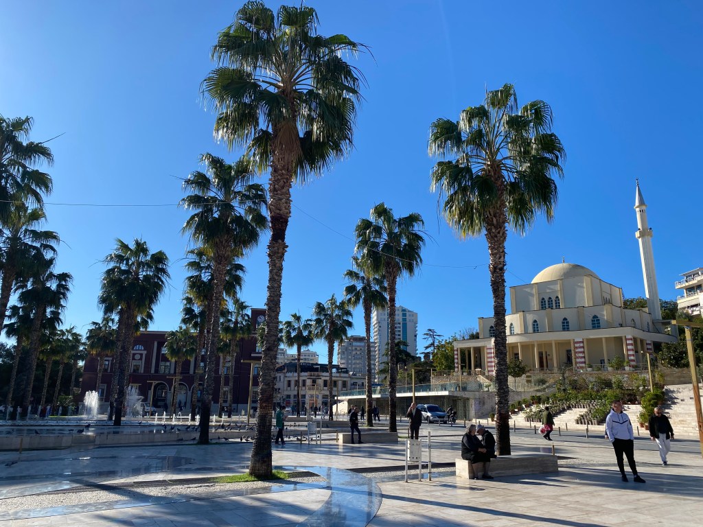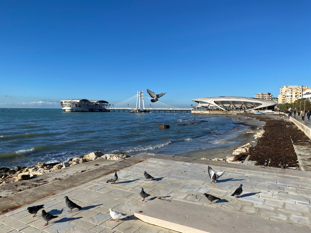 Edasi liikusime sadamalinna nimega Durres. Tasuta parklast, promenaadi ÀÀres, saime imelise pĂ€ikeseloojangu osaliseks. Vanalinn oli samuti lĂŒhikese jalutuskĂ€igu kaugusel. MĂ”nusalt palju palme oli ja elu kihas. Enamus kohti olid, erinevalt eelnevatest kuurortlinnadest, avatud.