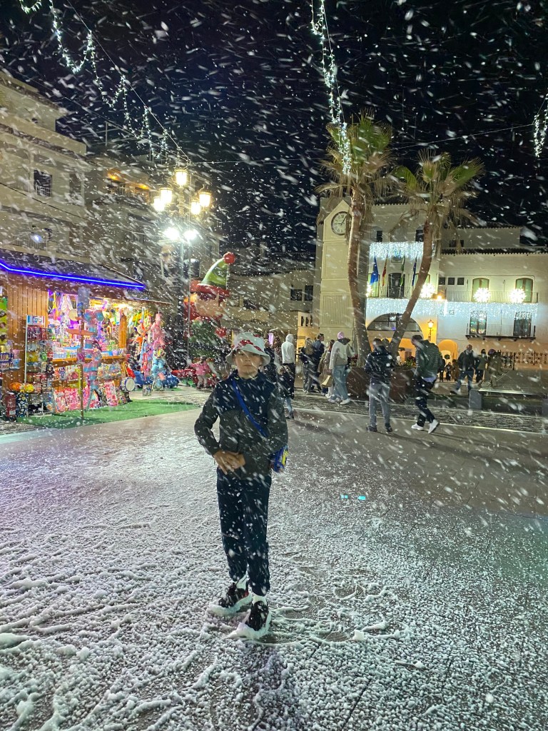 Balcon de Europal oli imeilus jĂ”ulutulede all pĂ€ikeseloojangut vaadata ja suunduda keskvĂ€ljakule peole. Igal Ă”htul kuni kolme kuningapĂ€evani on Ă”htune meelelahutus. Meil Ă”nnestus nautida Flamenco  bĂ€ndi ning tantsijate- ja kepikĂ”ndijate paraadi. đđŻââïž