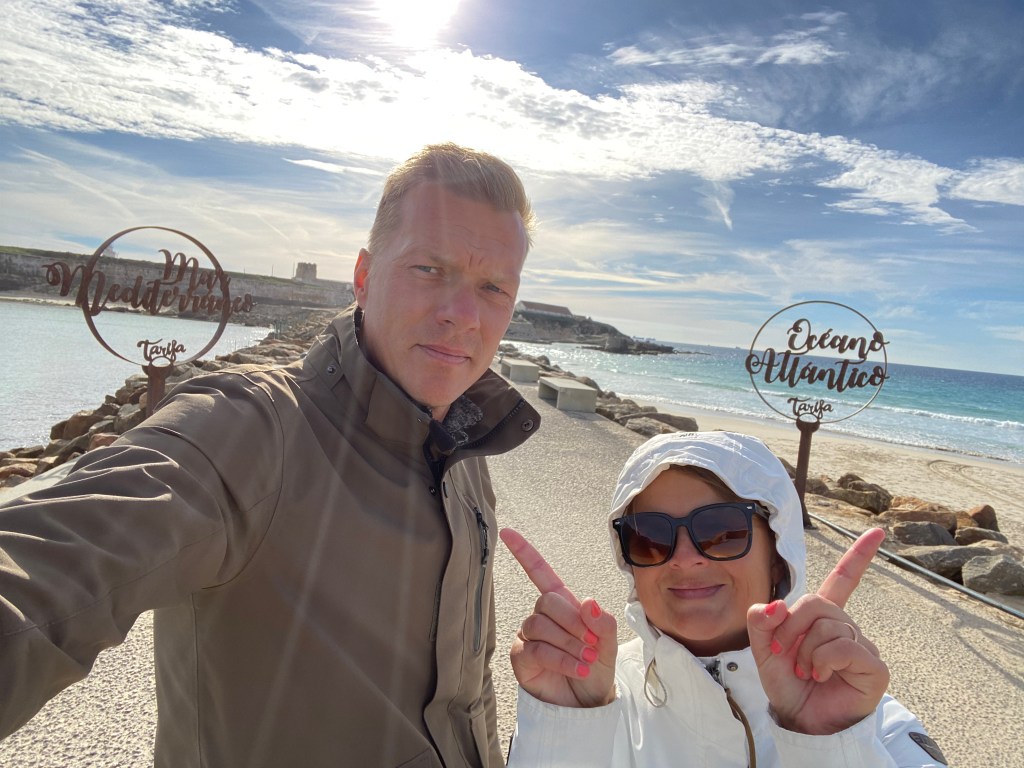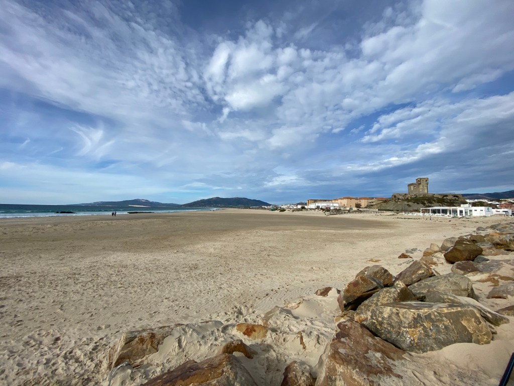 Plaan oli jääda üheks ööks Tarifasse ja siis hommikul minna Gibraltarile. Õhtuks jõuda Carlose juurde Algicerasse ja järgmisel hommikul Aafrikasse üle minna. Aga Tarifas hommikul üles tõustes üllatas meid üle mitme kuu vihm, mürin ja äike ⛈️ See oli meie reisi 86 päeva jooksul esimene kord kui terve päev sadas vihma! Ausõna! Aga ka üle tüki aja magasin ilma lisatekita ja villaste sokkidetta 😂 seega siin on väga mõnus mahe kliima – niiske aga öösel ei lähe nii külmaks kui mujal rannikul. Ilmselt ookean teeb oma töö. Nüüd on siis selge miks Tarifas nii roheline on 😁