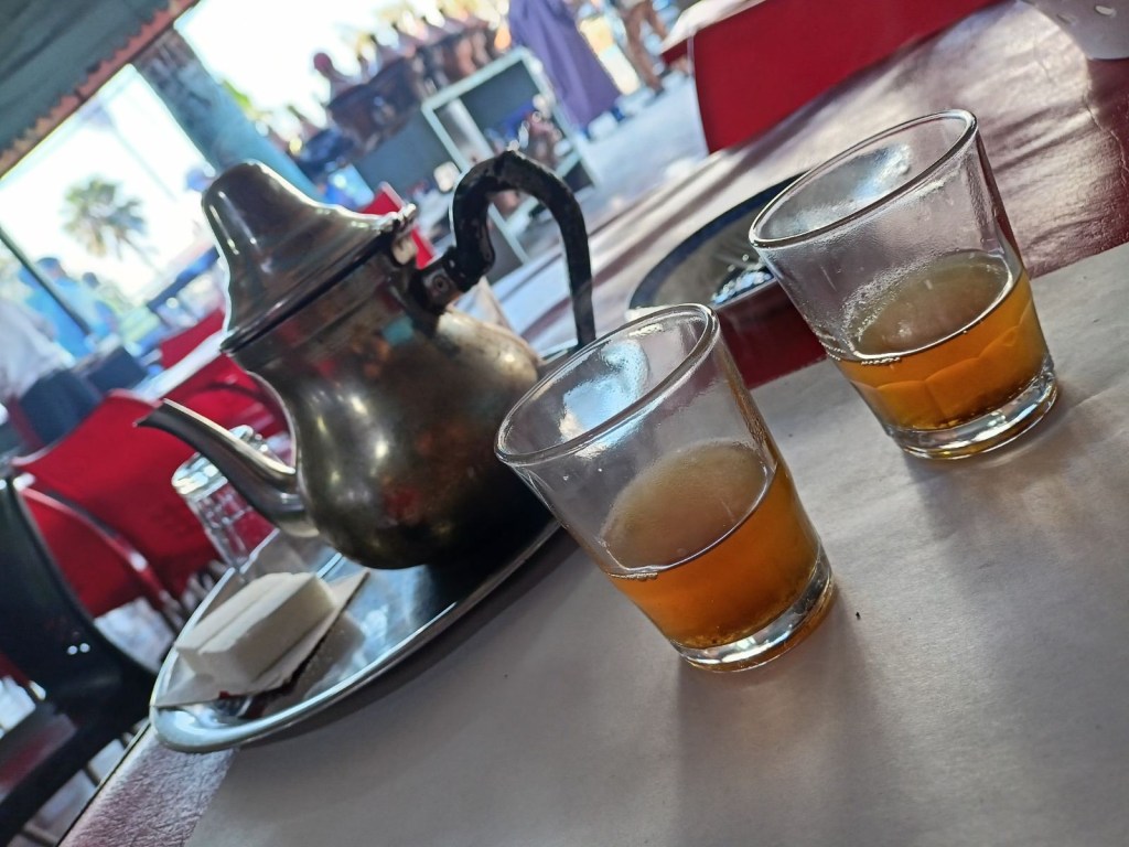 đŸ«–Ja muidugi tee! Maroko tee baseerub (vist) rohelisel teel ja lisatakse vĂ€rske melissikimp. Parajalt magus ja roheka vĂ€rvusega. VĂ€ga maitsev ja aromaatne!