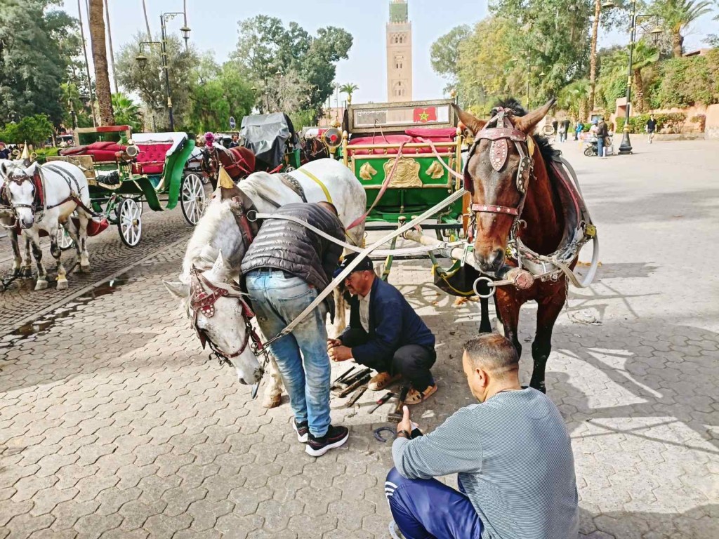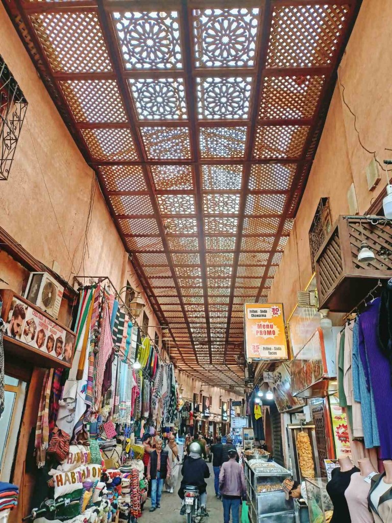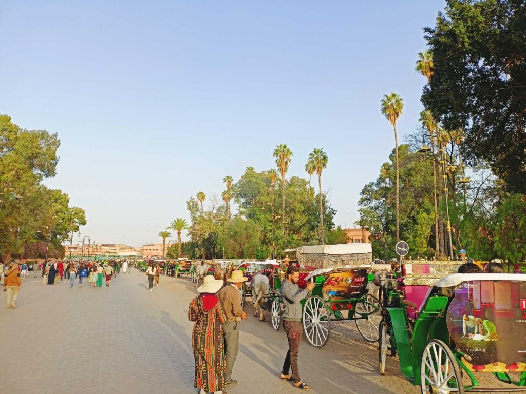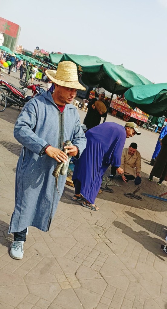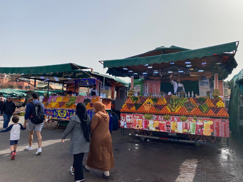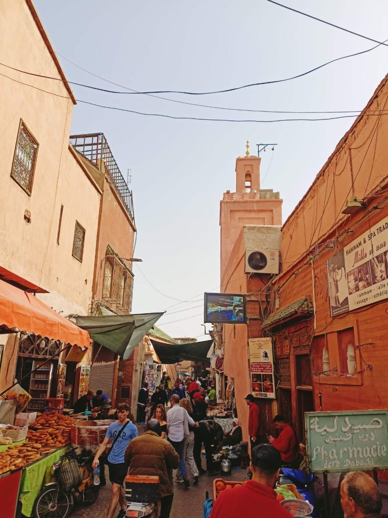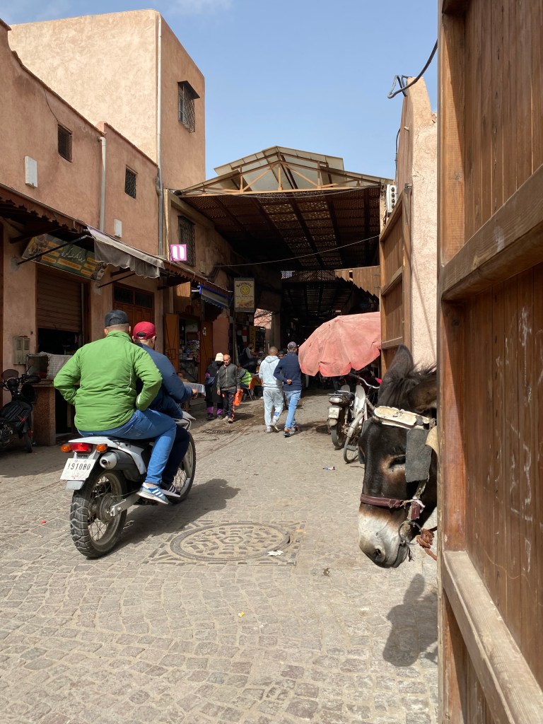 Meist väga lühikese jalutuskäigu kaugusel asuski suur Marrakechi turuplats, mis oli päeval täis maotaltsutajaid, ahve ja mahlaputkasid. Platsist voolavad lõputu labürindina pisikesed turutänavad, kus päeval lisaks turistimassidele kihutavad täiel kiirusel rollerid, kastiga võrrid ja jalgrattad. Kohata võib loomulikult ka koormate all ägavaid hobuseid ja eesleid 😁